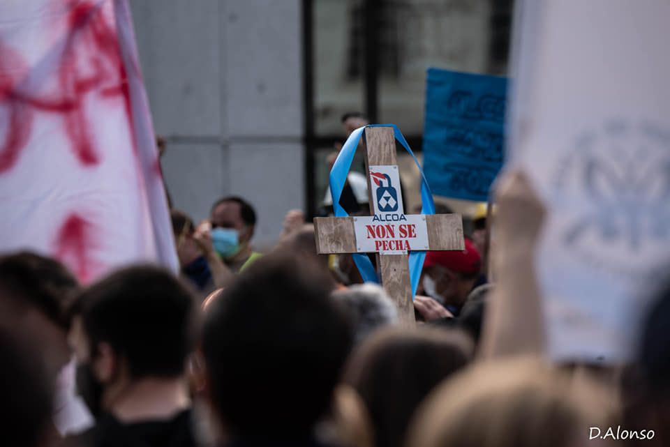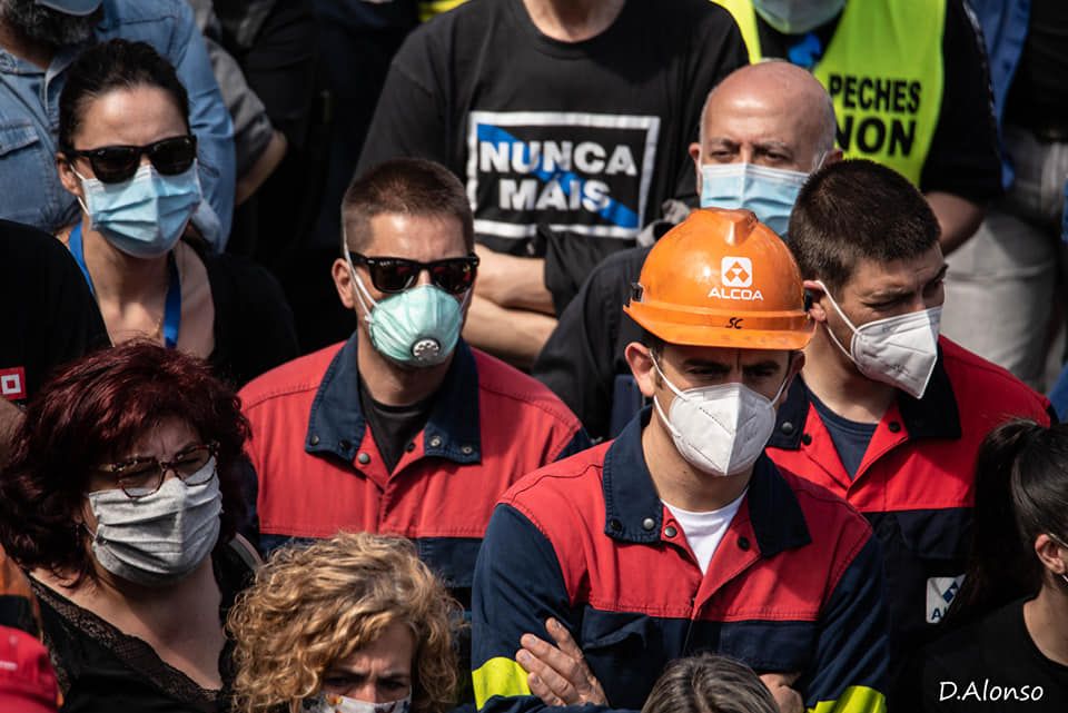 Nunha protesta que os sindicatos enfocaron como “a manifestación das familias“, o acto reivindicativo serviu para simbolizar -os veciños con camisolas negras e ataúdes en sinal de loito, entre traballadores vestidos de faena- a importancia socioeconómica que ten para a comarca da Mariña Lucense a produción de aluminio, unha actividade que durante máis de catro décadas garantiu estabilidade laboral na zona e soldos dignos. Os obreiros reclaman a Alcoa que retire o ERE anunciado e ao Goberno central que interveña a planta e aprobe unha tarifa eléctrica que favoreza a continuidade da produción.