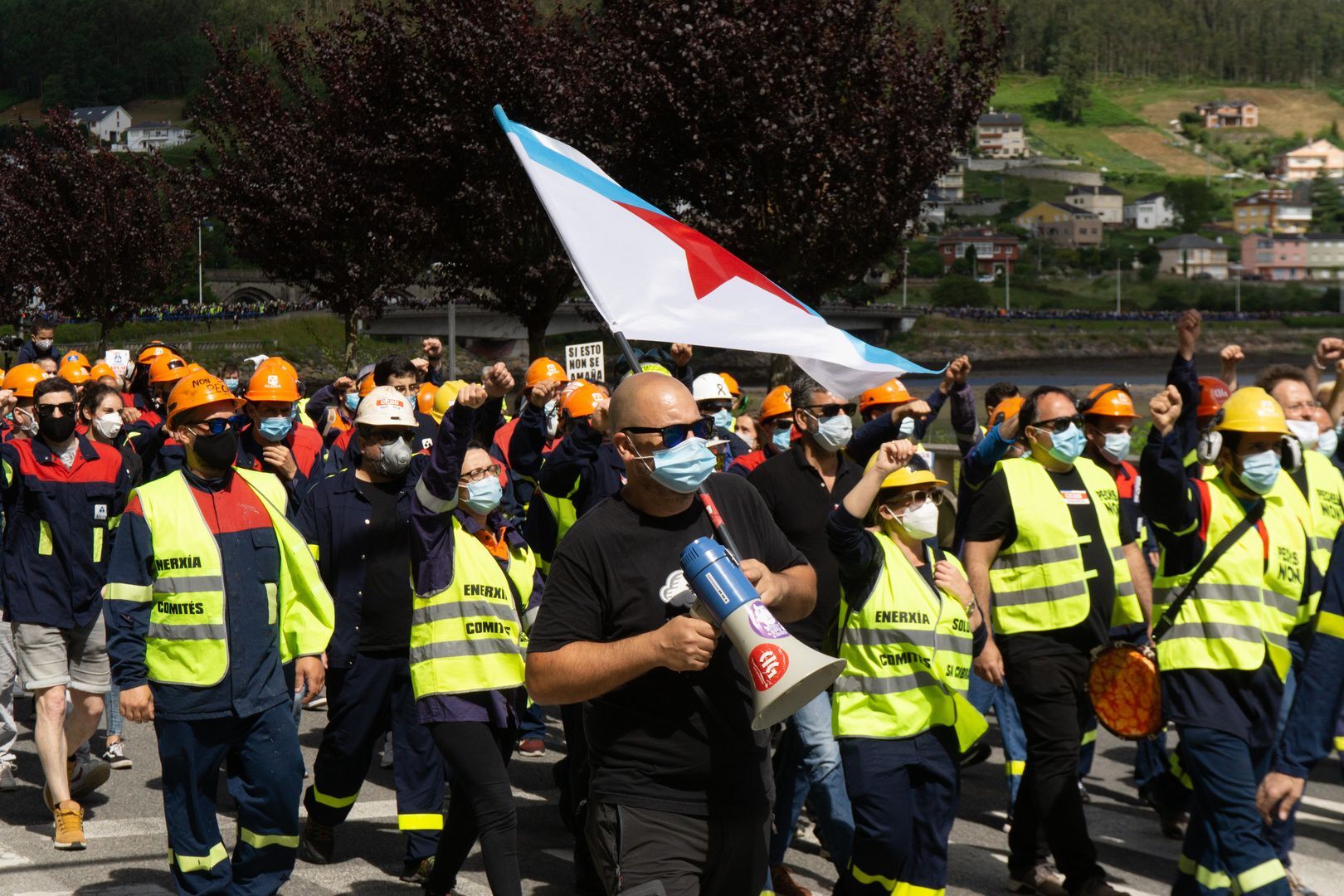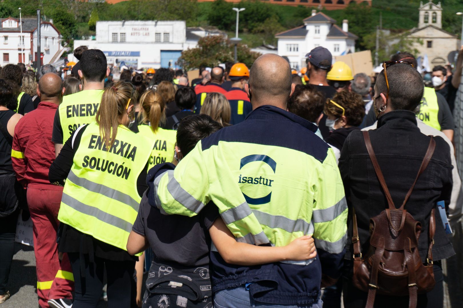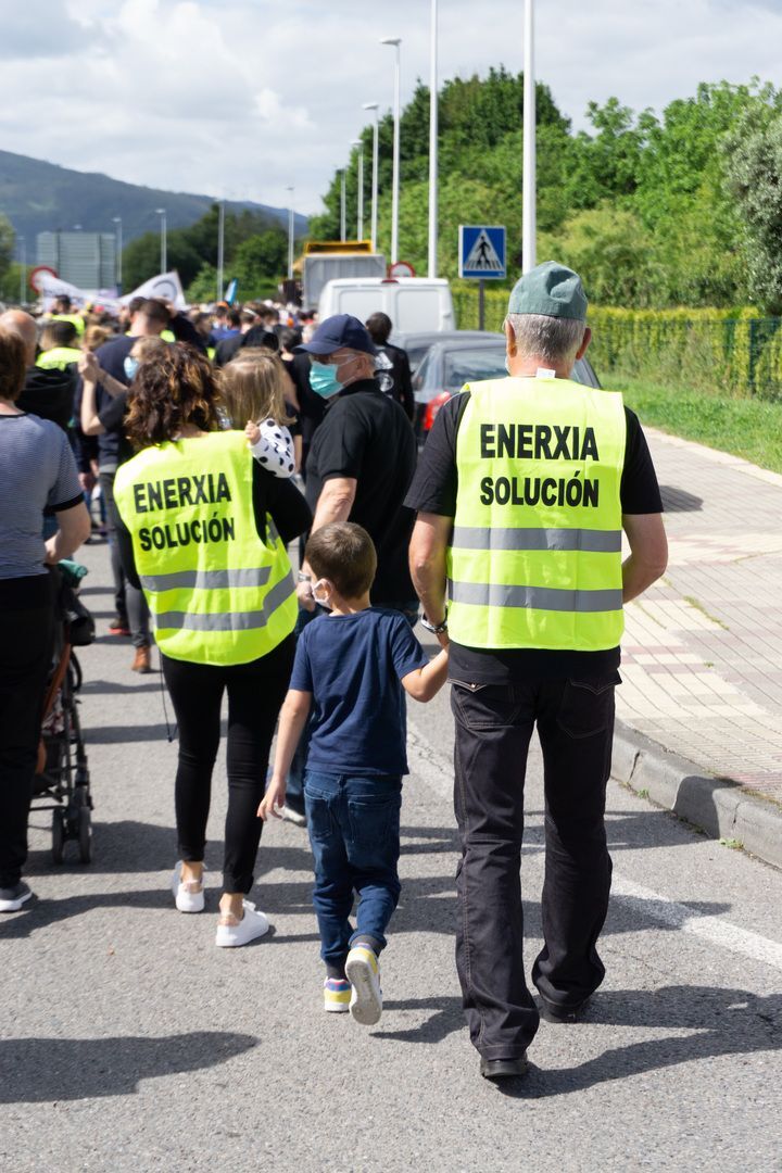Familias enteiras simbolizaron o loito que suporía para a comarca a perda dunha industria chave como a do aluminio; a manifestación deixou imaxes insólitas, como as de Juan Maya e Diego Alonso Cobelo